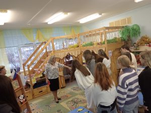 Заместитель заведующего по НМР Адамова Любовь Николаевна провела для студентов экскурсию, акцентируя внимание на понятии «Среда — третий педагог», рассказала о современной развивающей предметно-пространственной среде дошкольной организации, ориентированной на ребенка.
