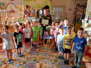 Дети подготовили для гостя стихи, подарили небольшие сувениры, сделанные своими руками и все вместе исполнили «Катюшу».