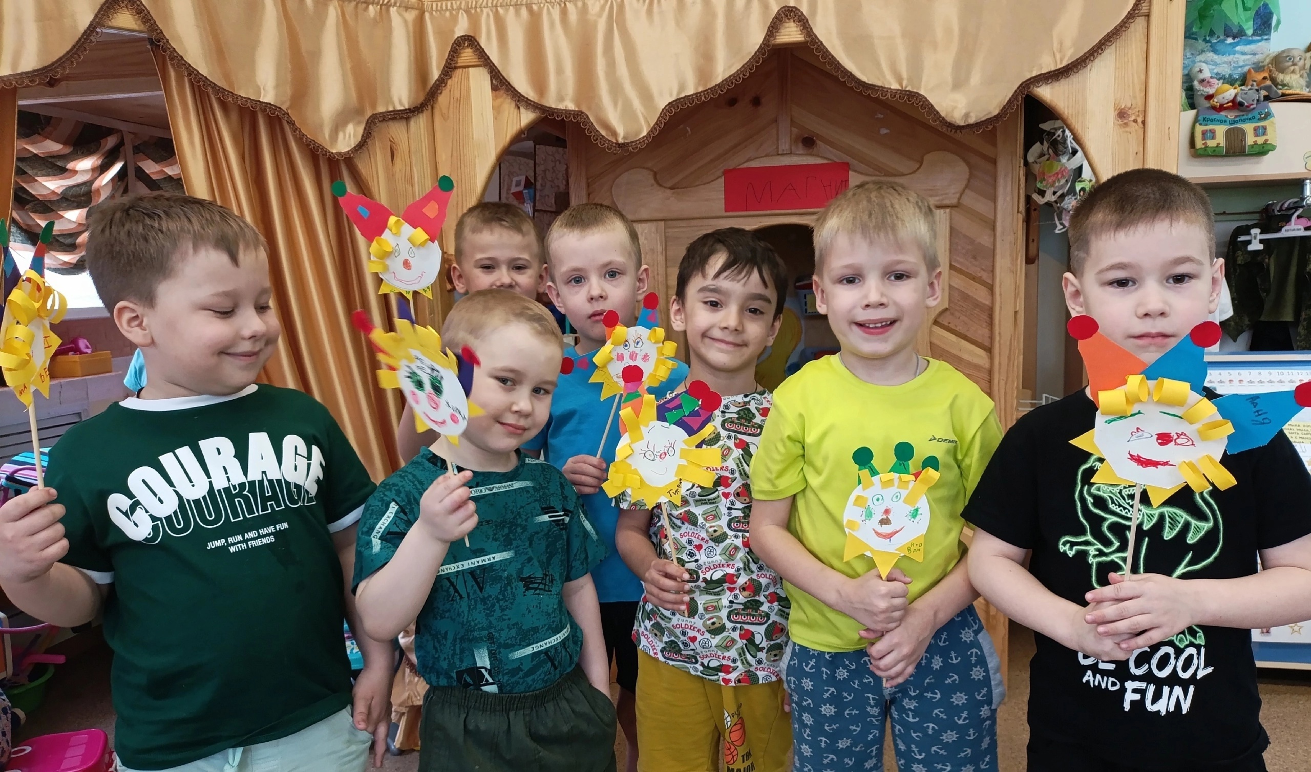 Сегодня в группе «Сказка» царила атмосфера праздника . Дети были в восторге от сказочного меню, смастерили символ праздника — весёлого клоуна, познакомились с небылицами и послушали докучные сказки. Даже яблоки на второй завтрак оказались молодильными!