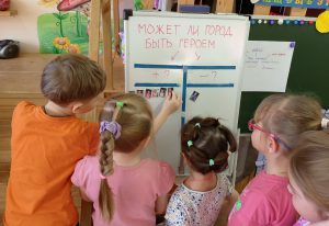 Но после долгих обсуждений, рассматривания фотографий и иллюстраций в книгах, дети пришли к выводу, что героями могут быть не только отдельные люди, но и целые города.
