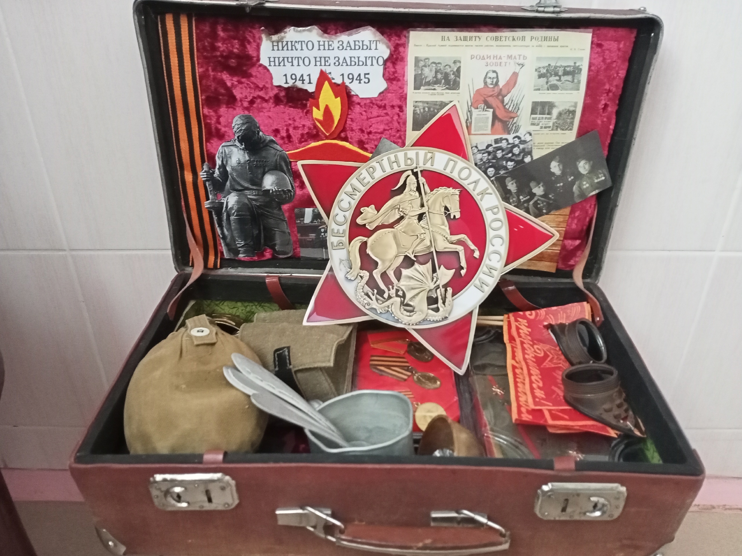 Большое впечатление произвели на детей подлинные свидетельства тех незабываемых дней: пожелтевшие фотографии их прадедов — ветеранов боевых действий, трогательные фронтовые письма и предметы военной атрибутики — каски, фляжки, личные вещи участников войны.
