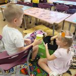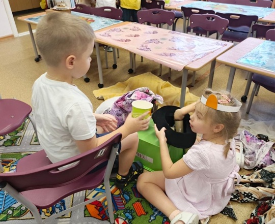 Ребята старшей группы очень любят играть! Педагоги создают специальные условия, помогающие поддержать и развить детскую игру. В пятницу пространство группы превратилось в столовую, полицейский участок и домики для животных. Сделав атрибуты и костюмы из подручных материалов и выбрав роли, ребята погрузились в игру.