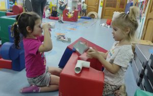В игровом пространстве сегодня было разнообразие ролей: принцессы и принцы, Рапунцель, русалочка, доктор, полицейский, строитель, продавец мороженого, парикмахер, водители.