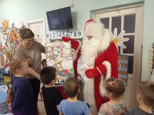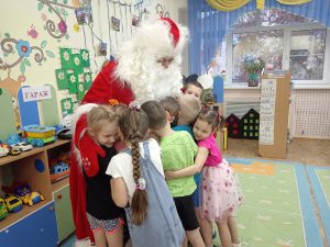 С большим удовольствием дошколята встретили Дедушку в детском саду: порадовали его веселыми песнями и танцами, рассказали стихи, подарили чудесные подарки и хорошее настроение.