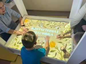 На прошедшей неделе ребята и родители знакомились с интерактивной песочницей, появившейся в детском саду благодаря грантовой поддержке Фонд Тимченко в рамках открытого конкурса «Сила внимания. (СВ 3.0)». Это уникальное оборудование, позволяющее решать множество коррекционно-развивающих задач. Программное обеспечение от компании «Инновации детям» предусматривает большой выбор интерактивных игр для дошкольников. Возможность менять ландшафт, пересыпать песок, прятать и …